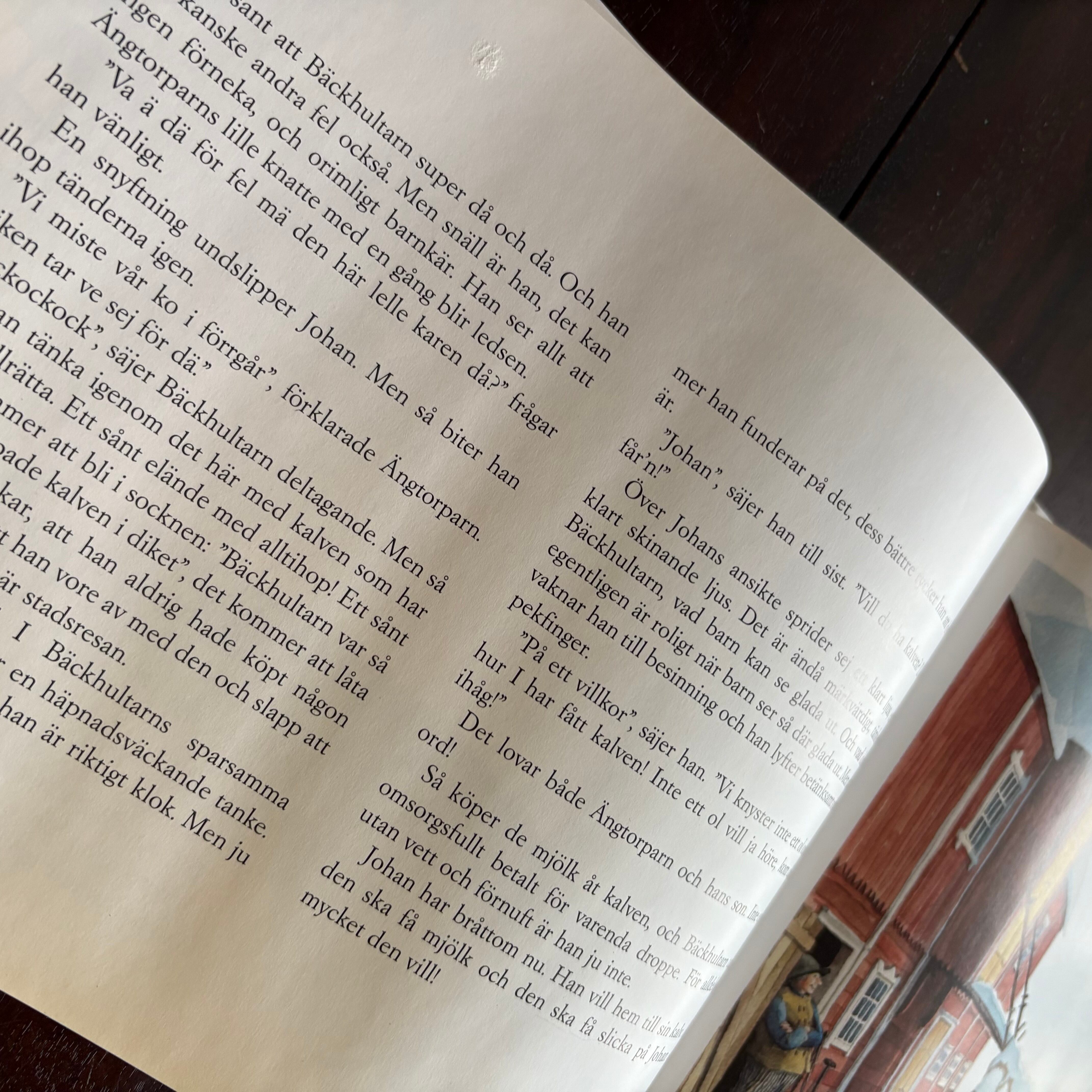 大切に飼っていた雌牛のエンブラをなくしたヨハン。ある時、農場主のベックフルトさんが置き去りにした子牛をヨハンが見つけます❀⁎༶
