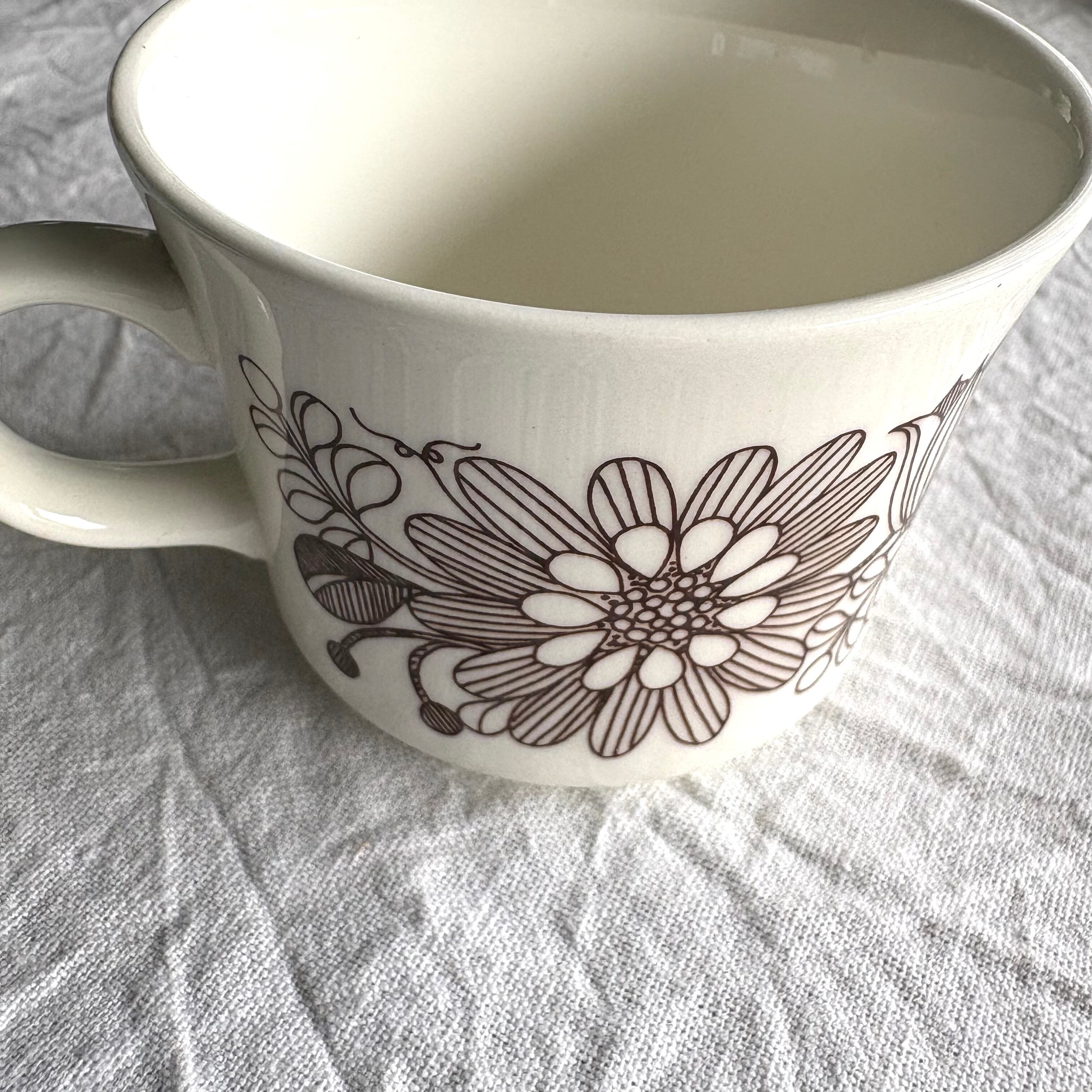 お花柄のこちらのカップ&ソーサー、デザインはフィンランドの陶芸家でアラビア社で長年装飾デザイナーとして活躍した Esteri Tomula / エストリ・トムラ。彼女の繊細な植物画は現在でも人気です