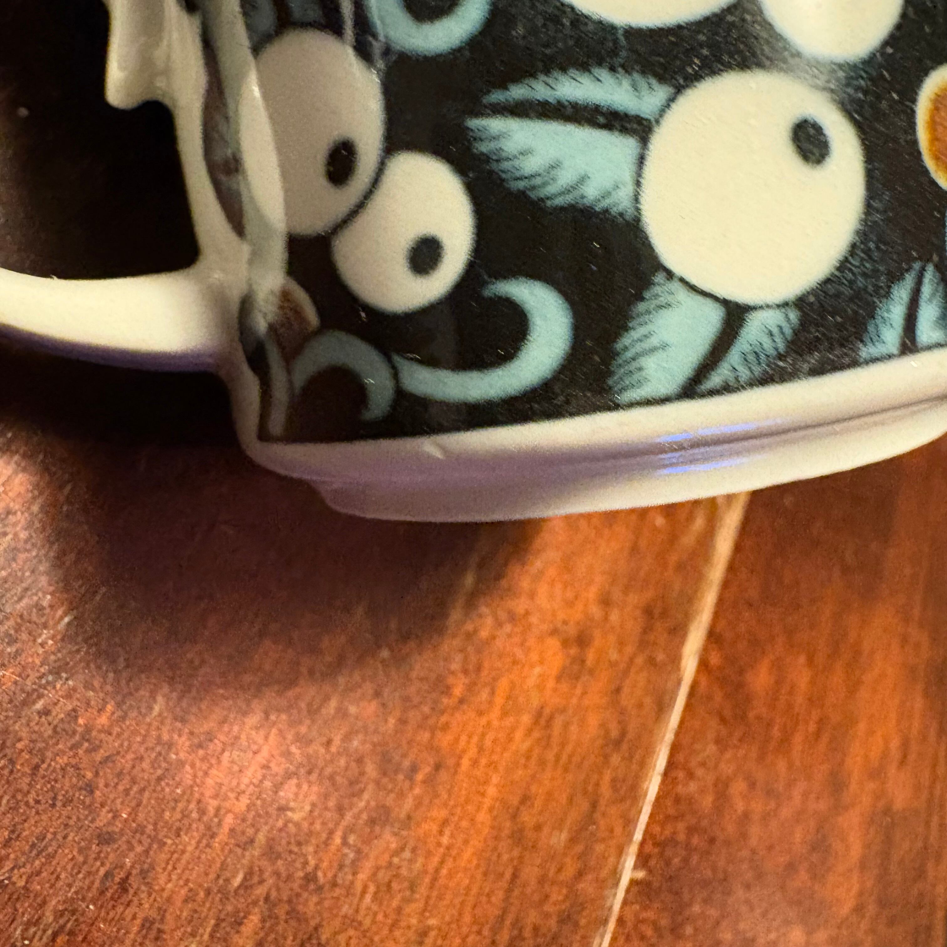 ■コンディション:カップ、ソーサー、プレートにカトラリースクラッチ・スレが見られます。プレートに一点小さな色飛びあり。カップに2mm程度釉薬がのってない箇所あり(写真7枚目)。その他ヒビやカケなどはありません
