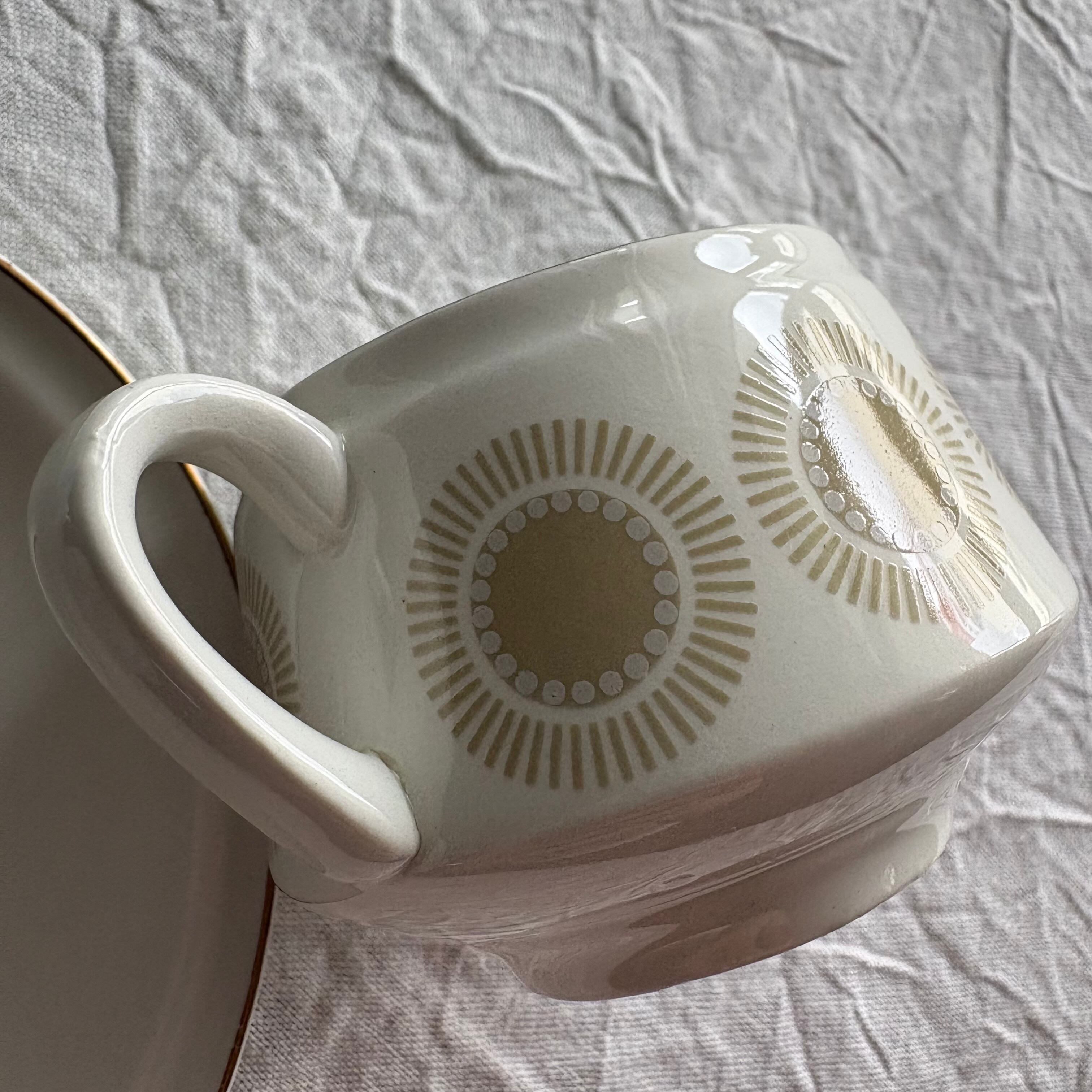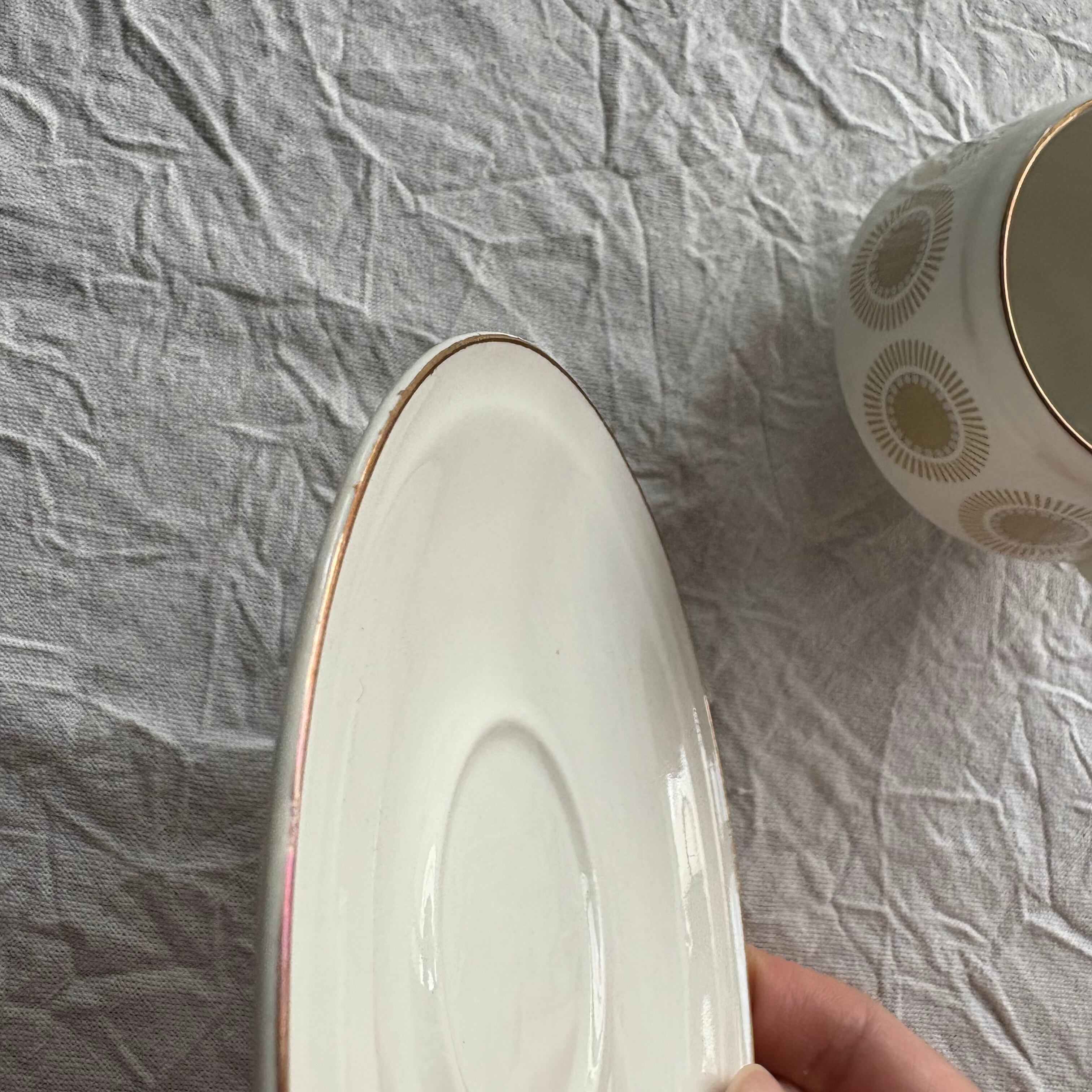 ■コンディション:ソーサーに多少のカトラリースクラッチ、微少の色飛び。ゴールドの縁が少し薄くなっている箇所あり。カップ底面の高台に多少の使用感はありますが、その他ワレやカケのない良いヴィンテージコンディションです。