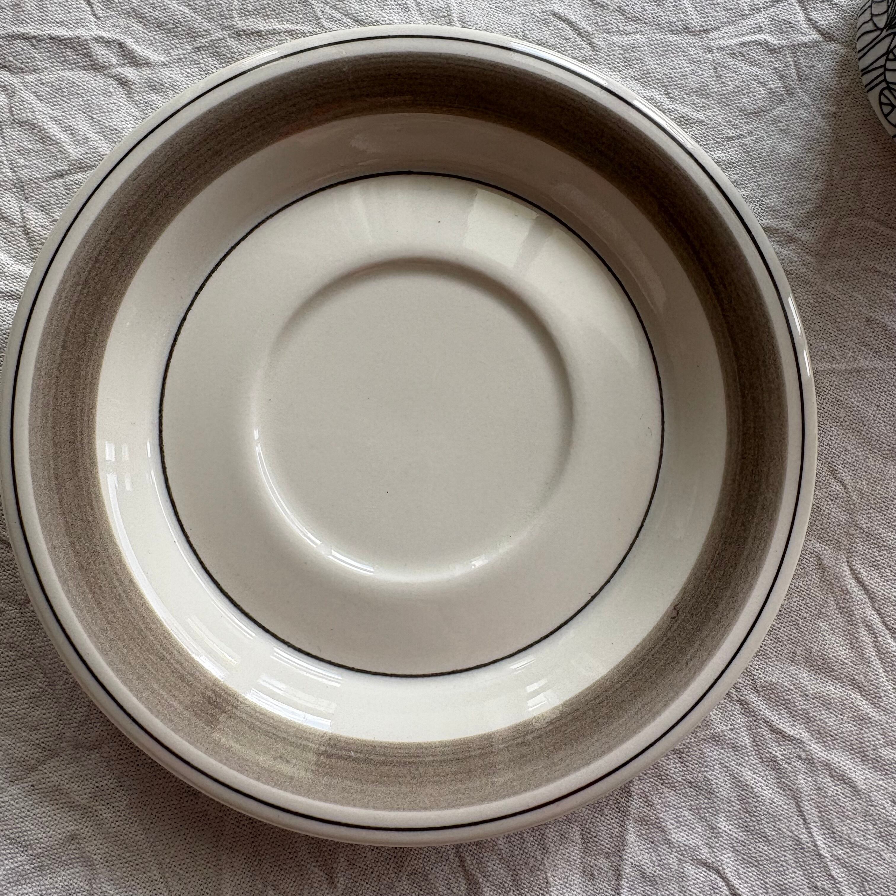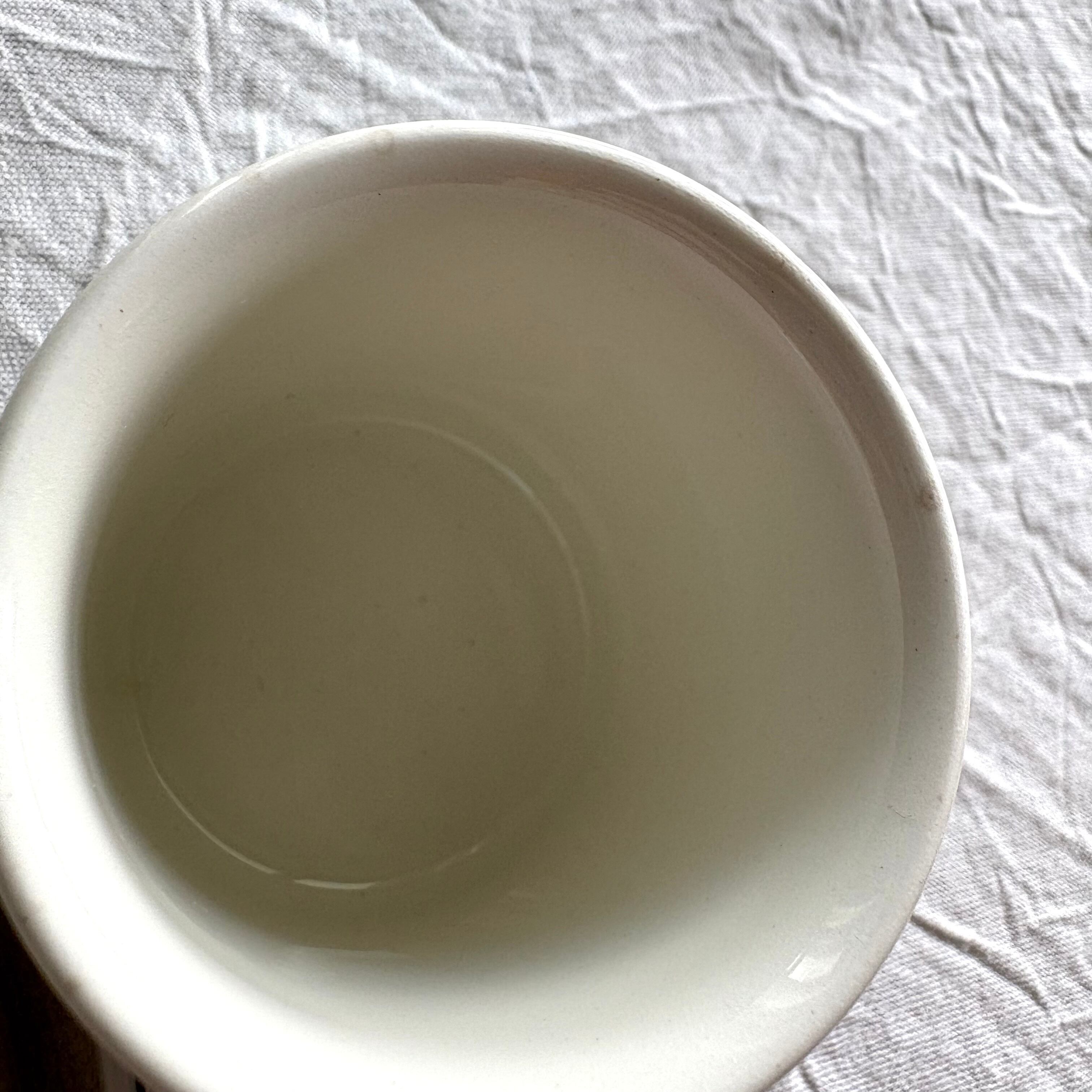 ■コンディション:カップ上部の縁部分にいくつか経年のシミがあり。取手の釉薬の中に製造時からと思われる気泡。お値段考慮しています。ソーサーに多少のカトラリースクラッチ、その他ワレやカケのないヴィンテージコンディションです。