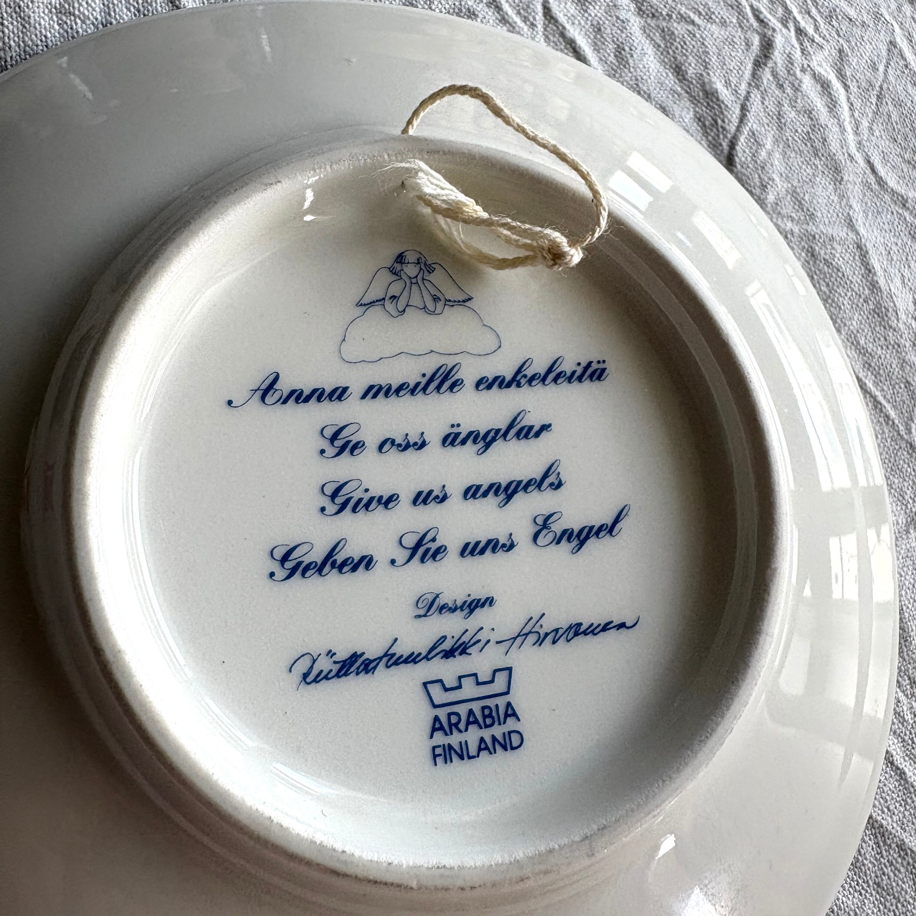 【ヴィンテージ】ARABIA Anna meille enkeleitä アラビア 天使をください 雲に乗ってお散歩中の天使の小さなプレート 陶板