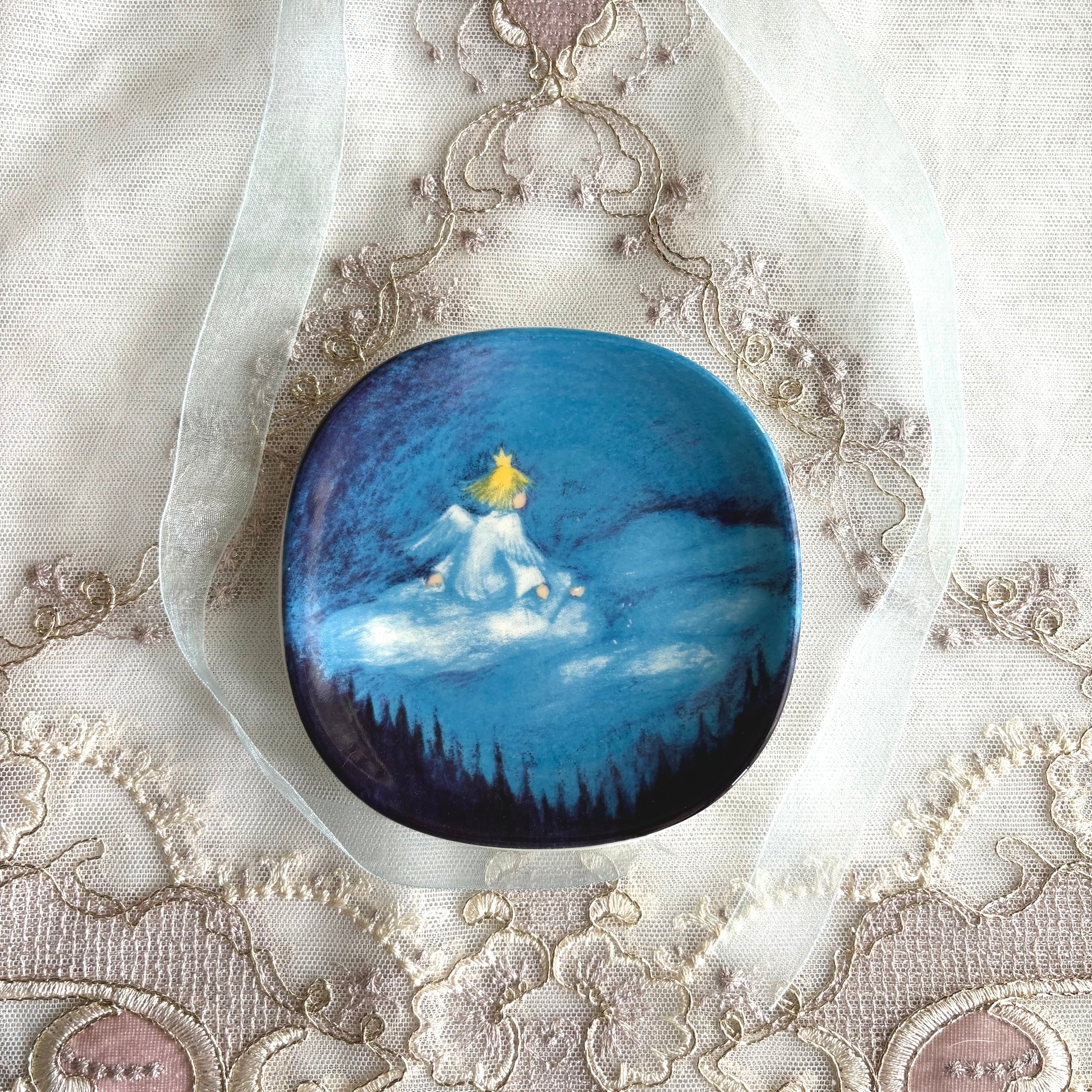 ARABIA Anna meille enkeleitä⋆༶⠜雲に乗ってお散歩中の天使の小さなプレート