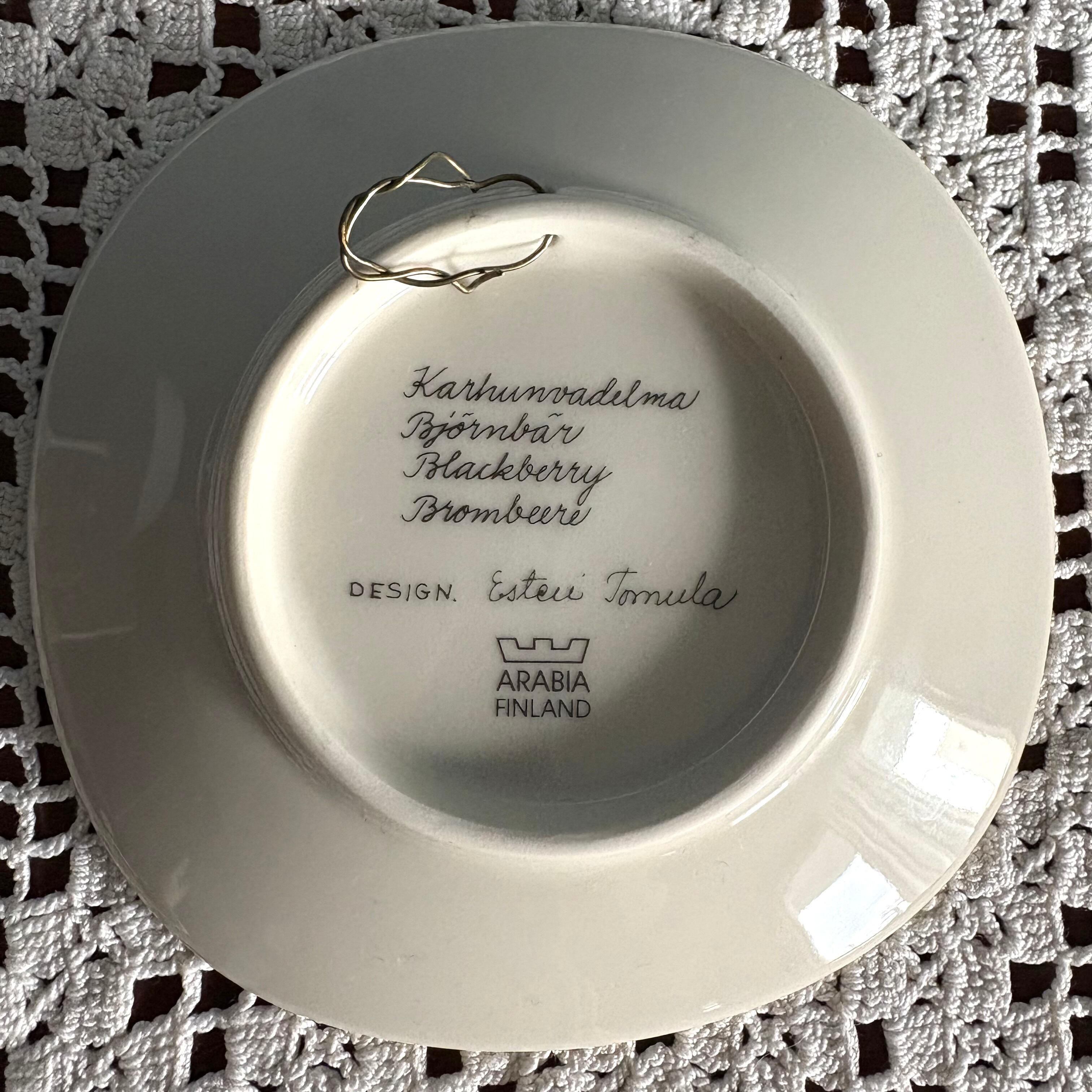 【ヴィンテージ】ARABIA Botanica アラビア ボタニカシリーズ rubus fruticosus ブラックベリー ウォールプレート 壁掛け 陶板