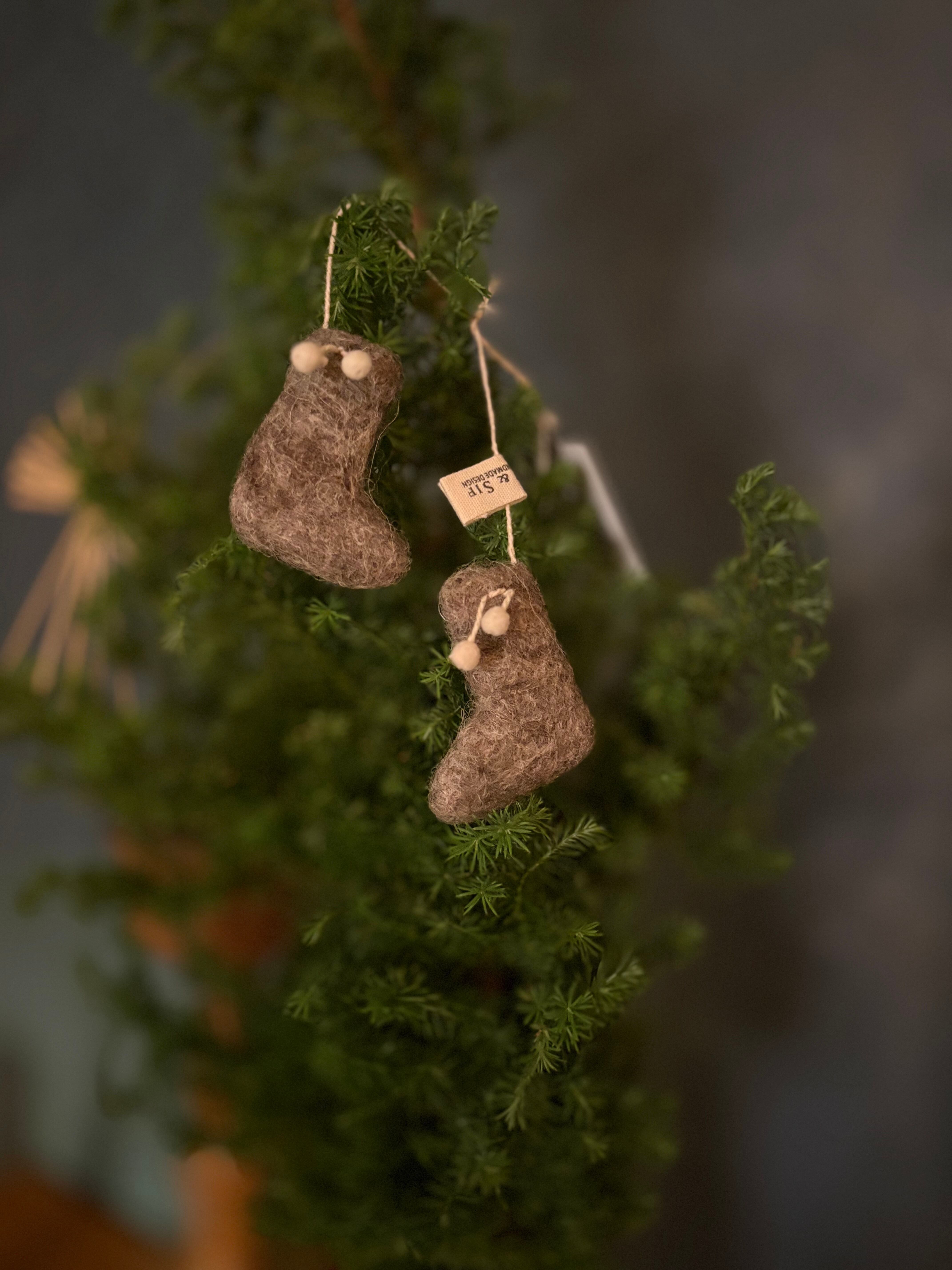 長靴のオーナメントは手作りで温かみが感じられ、冬のシーズンにもぴったりですね
