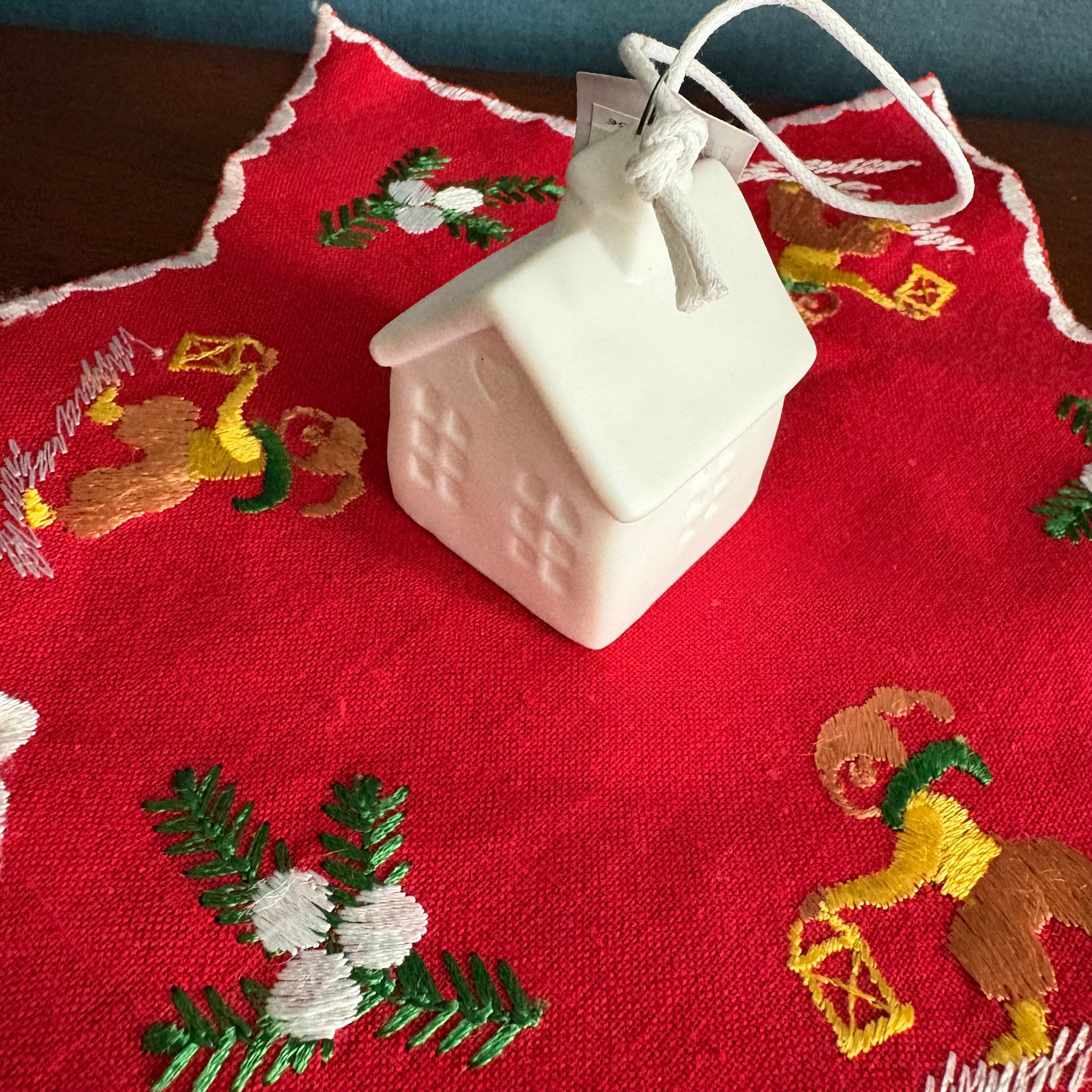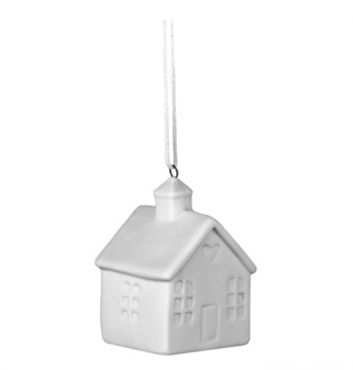 お家にハートがついた愛のあふれる家のオーナメント。優しいホワイトの色合いがなごみ、他のオーナメントとも合わせやすいです
