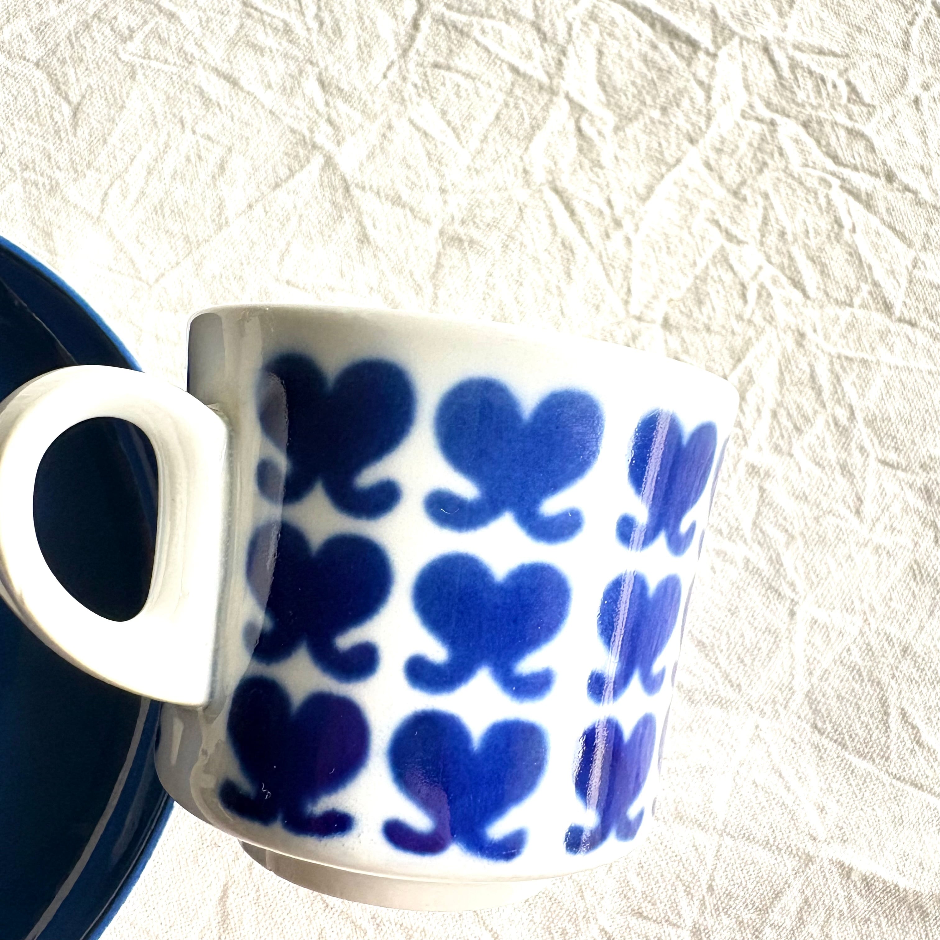 【ヴィンテージ】ARABIA Stencilアラビア ステンシル 青のハート カップ&ソーサー B