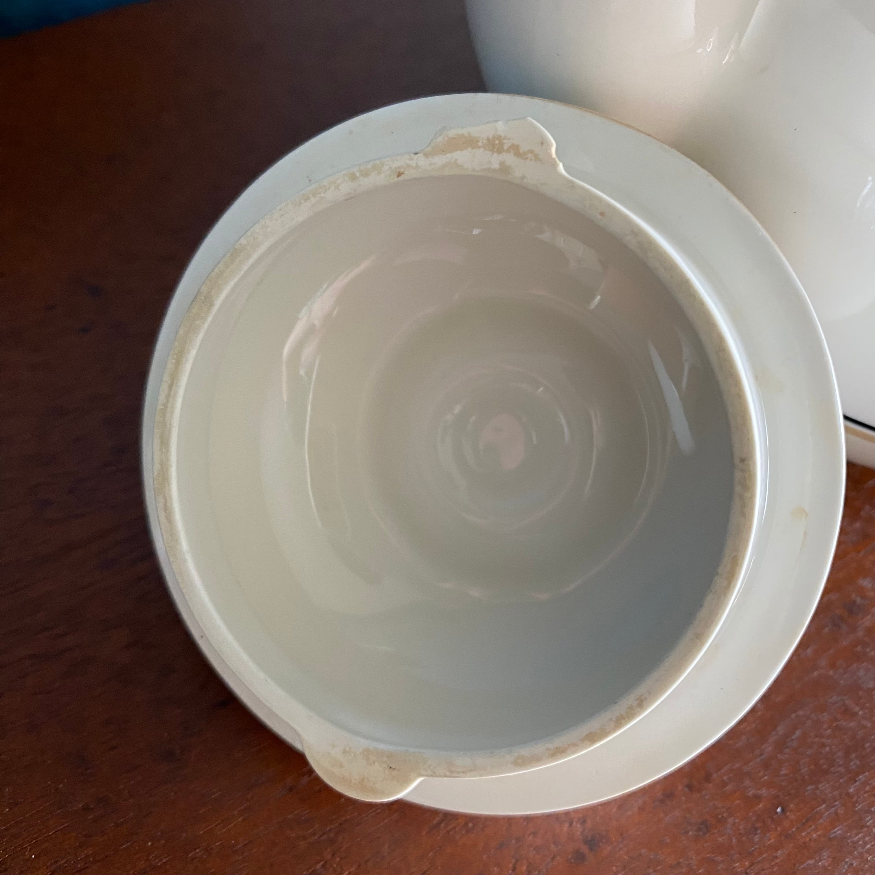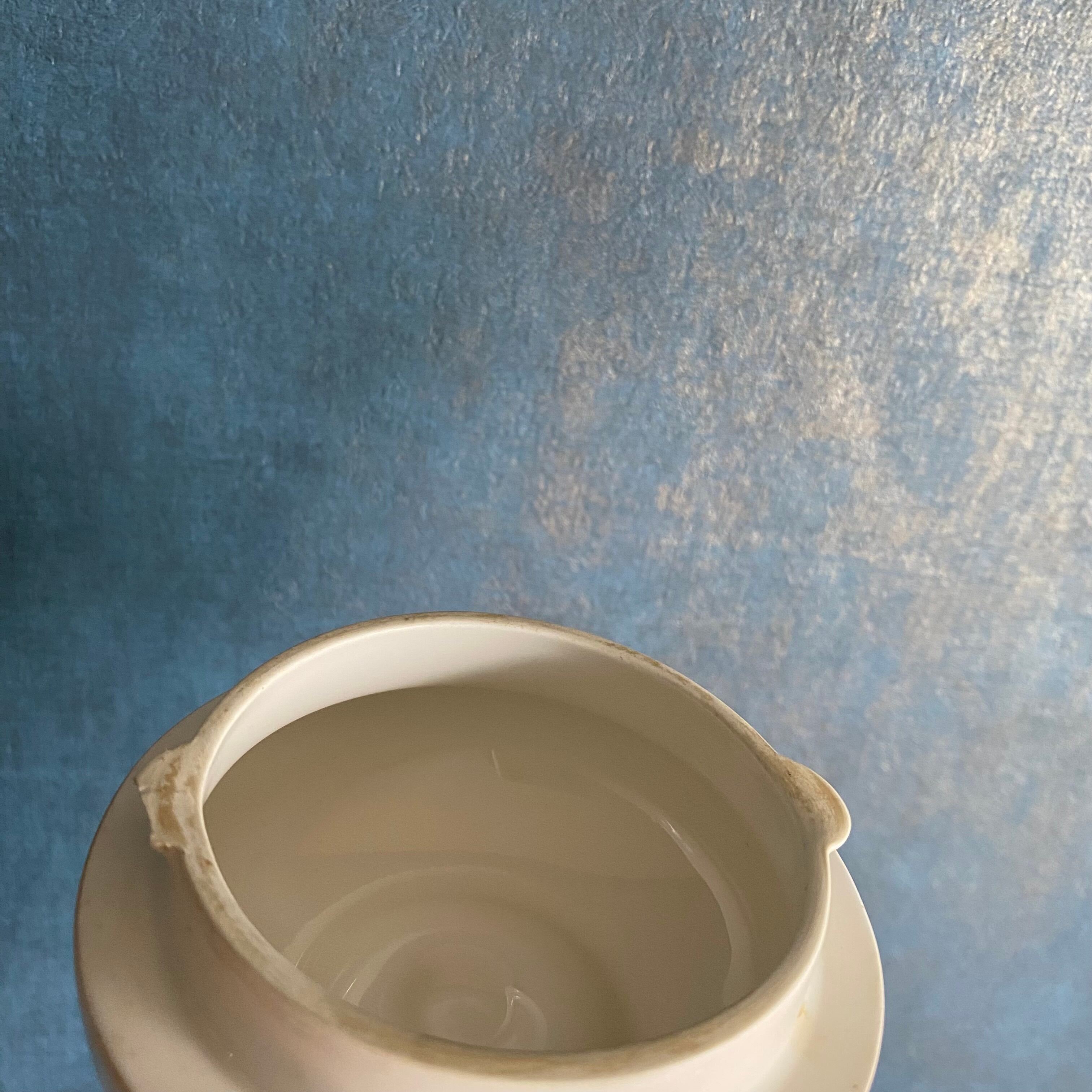 このポットのデザインはインケリ・レイヴォ/Inkeri Leivo。アラビアでは90年代まで様々なアークティカシリーズが作られましたが、こちらのセイタは毎日使っても飽きのこない優しいシリーズ。落ち着いたトーンの淡いベージュのラインとそれを引き締める紺色の細いライン。ちなみにアークティカとは北極を意味します。