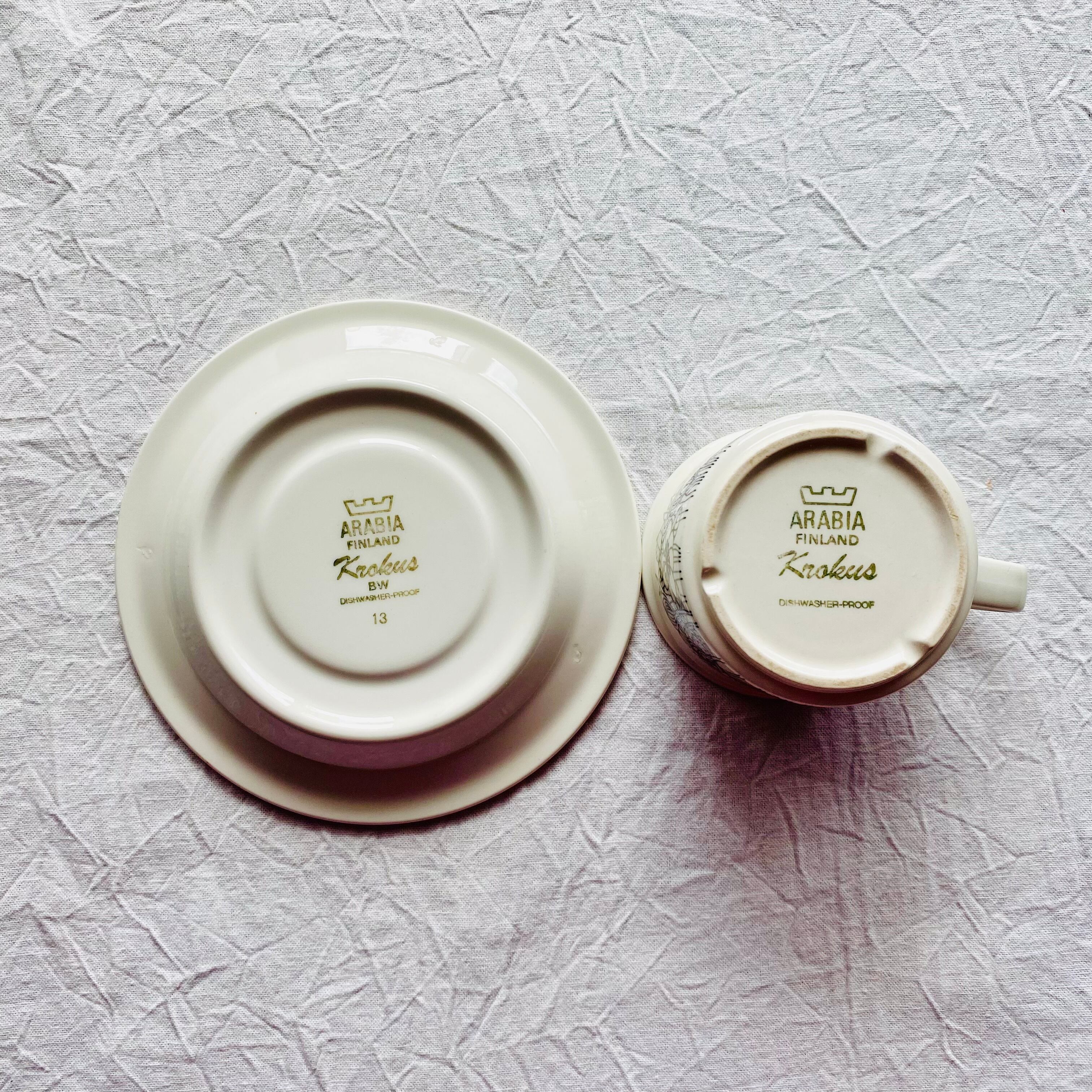 Vintage ARABIA Krokus ︎⁎༶ アラビア クロッカス モノトーン カップ&ソーサー