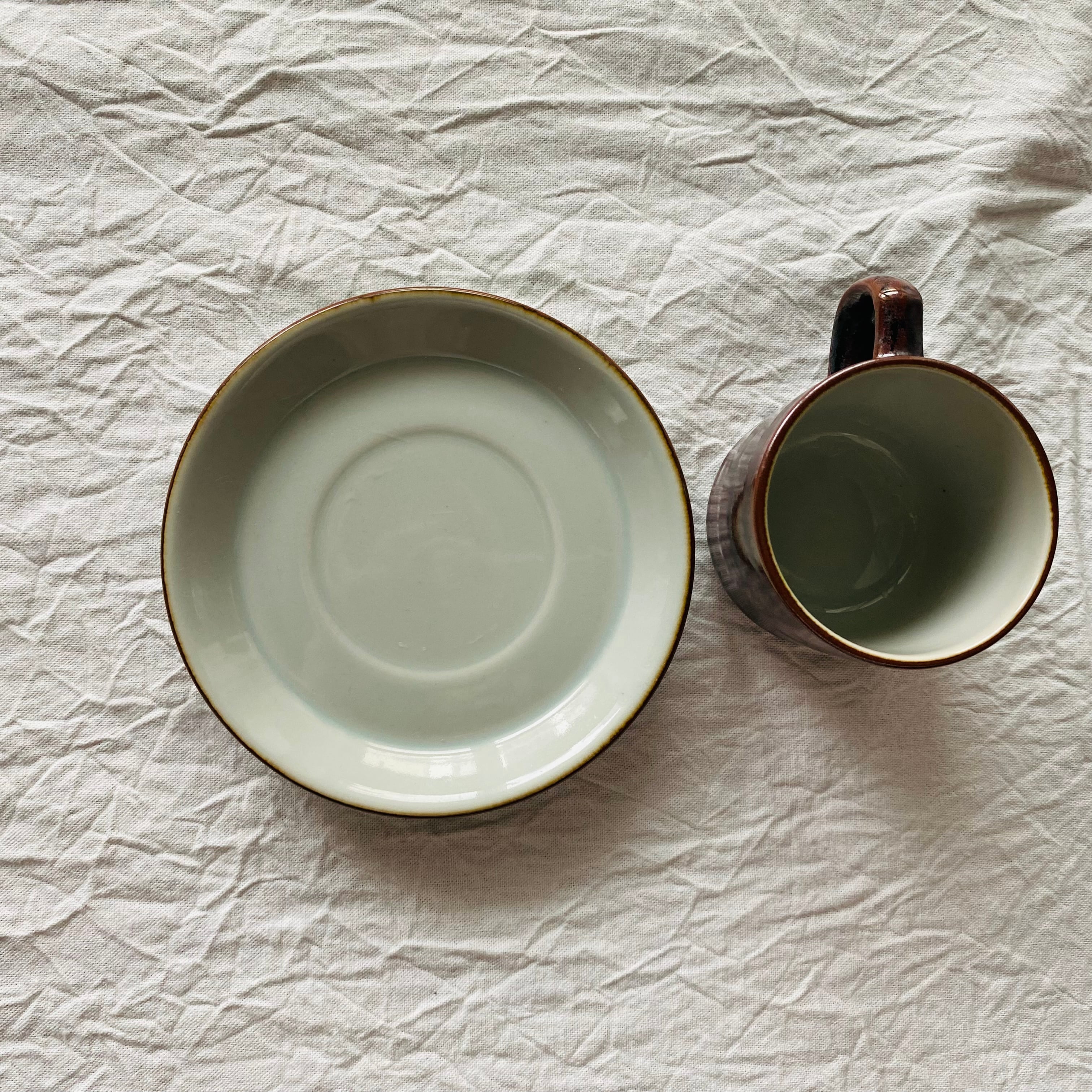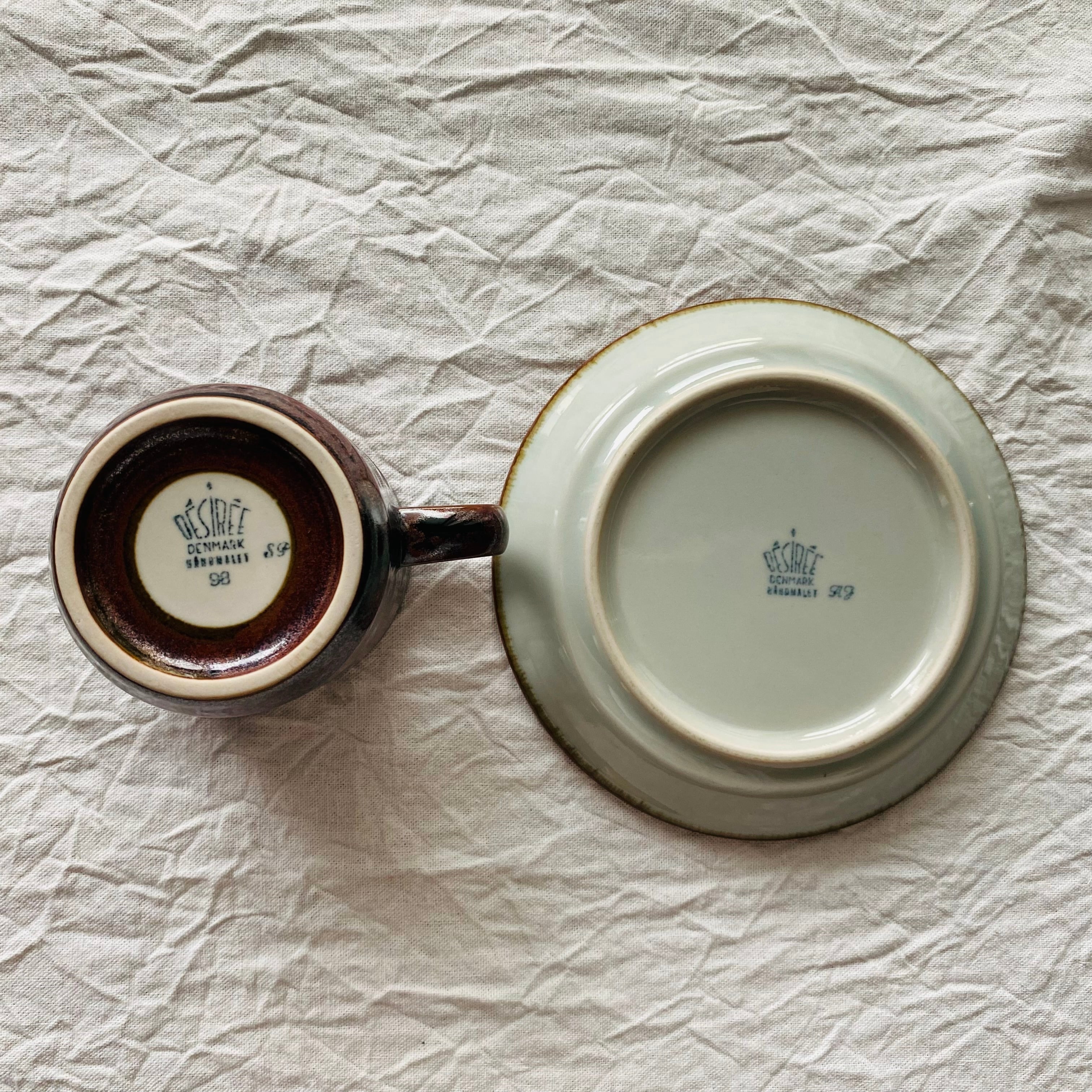 Desiree /デシレ社は1964年デンマークに設立。2004年に窯を閉じるまで、デンマークの伝統的な技術とモダンなデザインで人気を博した陶磁器ブランドです。その中で今回届いたのはThule /ツーレ シリーズ。ツーレとは「極北の地」を意味しており、赤茶色の温かみある色味は日本の和の雰囲気にもしっくりと馴染みます。カップの釉薬のかかり具合によって生み出される二つと同じものがない少し無骨なグラデーションが魅力です。